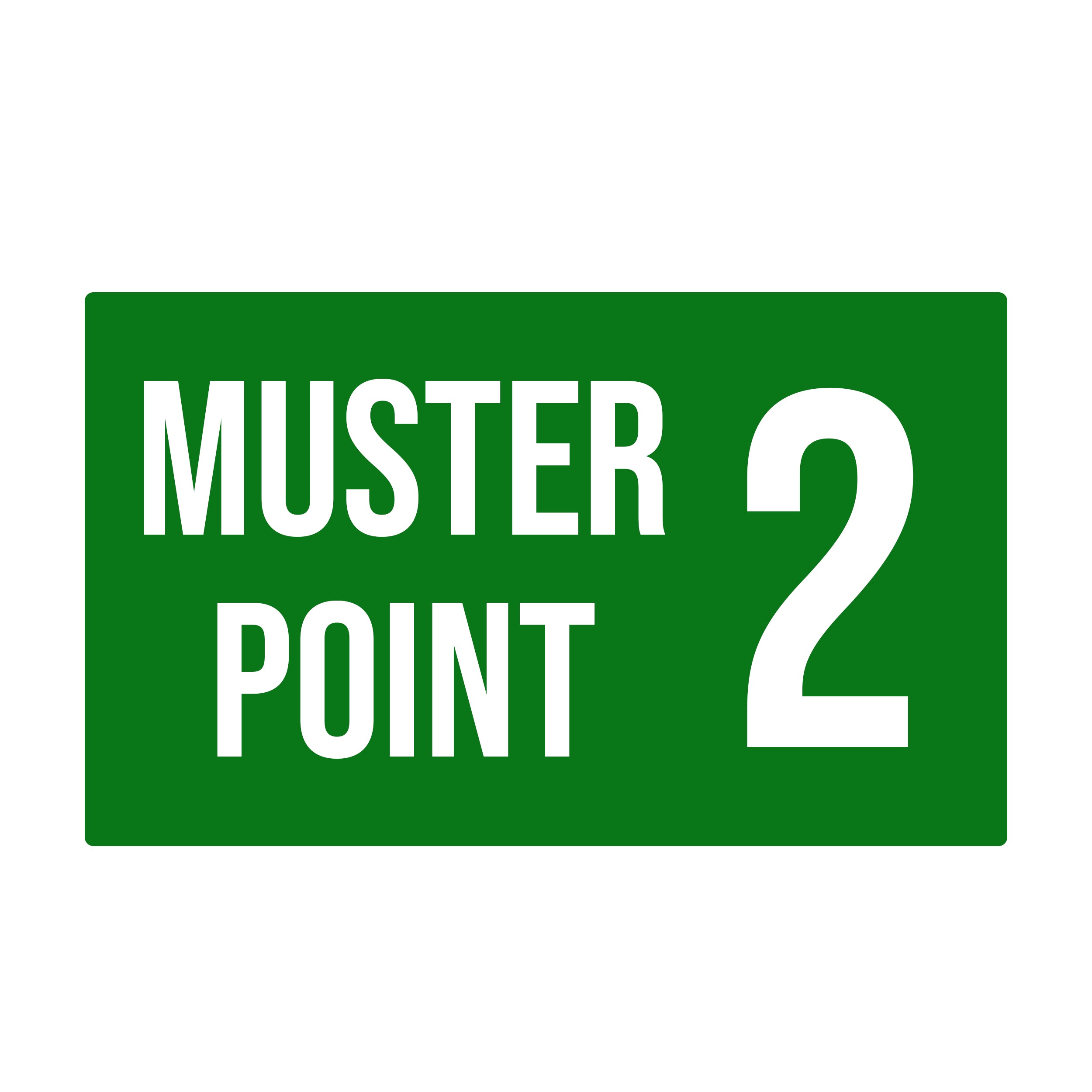 Muster Point 2 decal sticker designed for workplace safety compliance. This durable vinyl sign clearly identifies designated assembly areas during emergency evacuations, meeting OSHA and fire code requirements. Weather-resistant material ensures long-lasting visibility both indoors and outdoors. Easy application on walls, doors, and equipment. Essential for facilities, warehouses, offices, and industrial spaces that require proper emergency preparedness documentation and employee safety protocols.